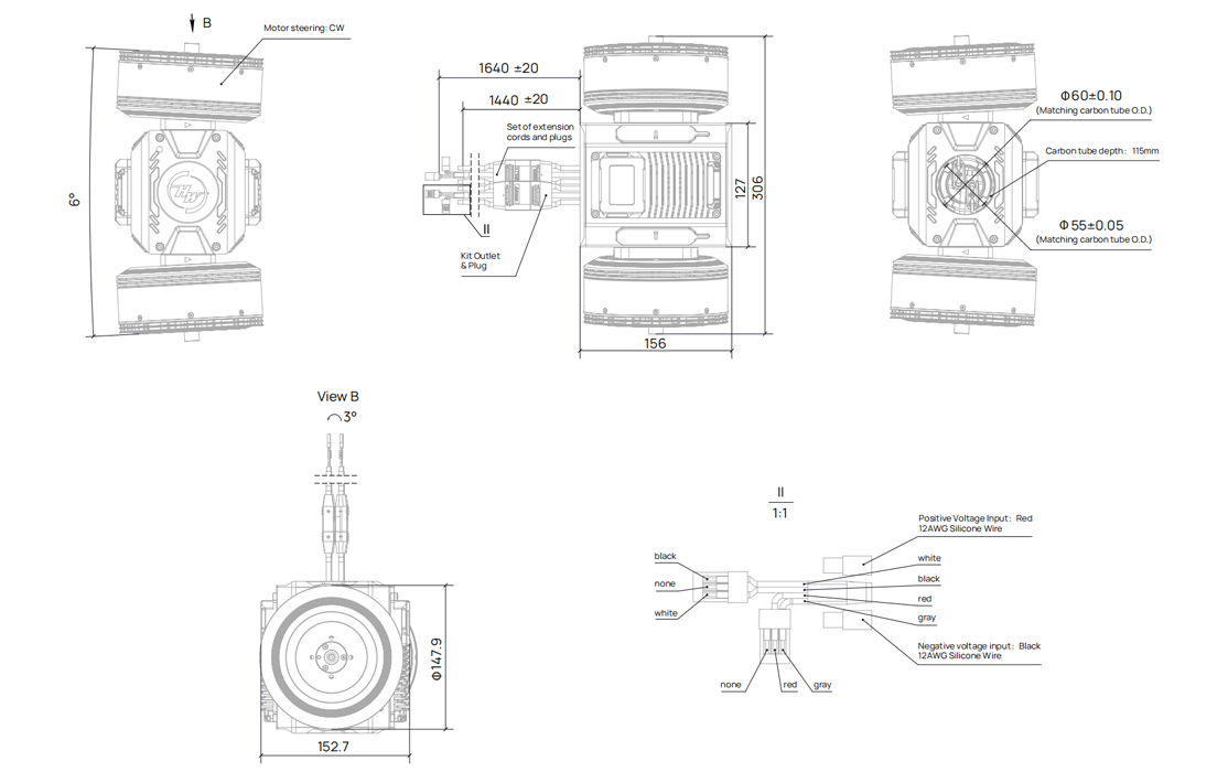 Recommended takeoff weight: 180 kg (quad-axis, eight-propeller configuration)